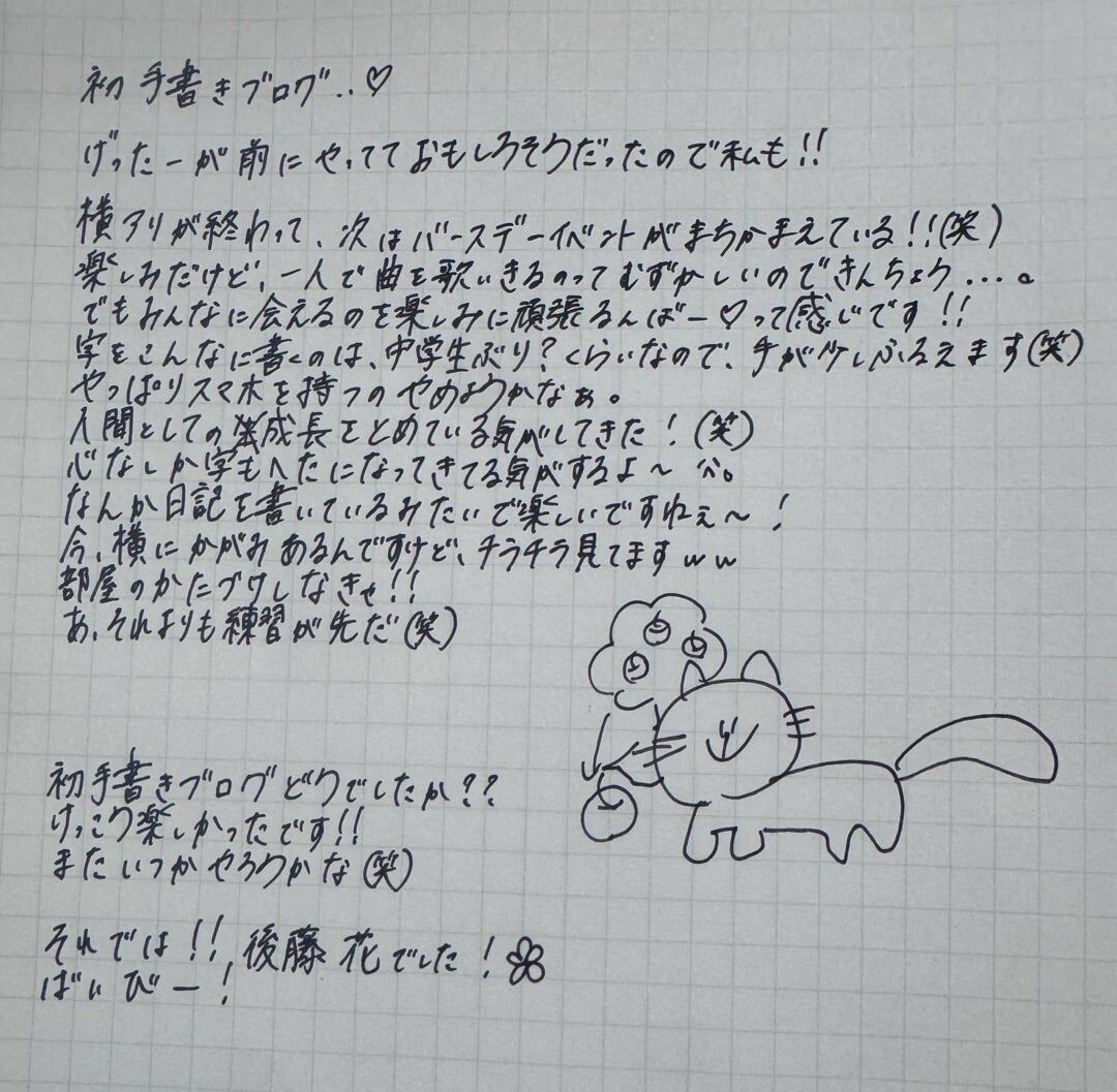 はななの字が綺麗でかわちぃ