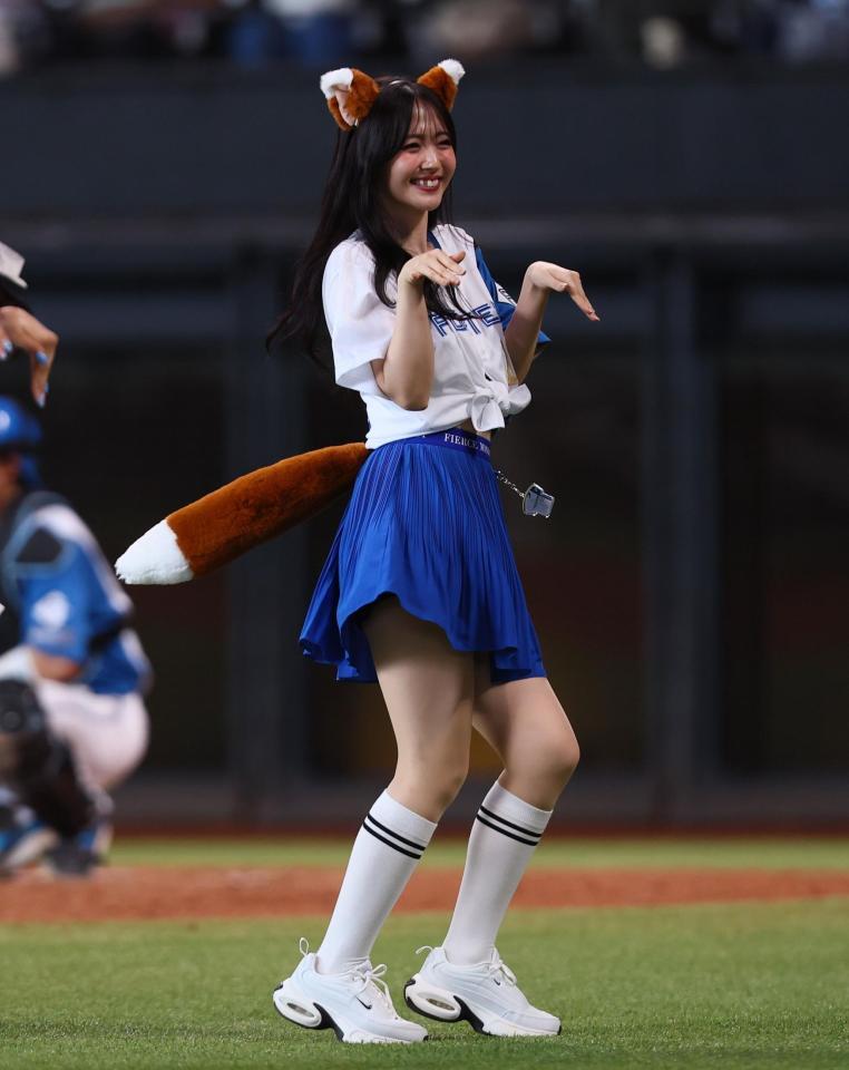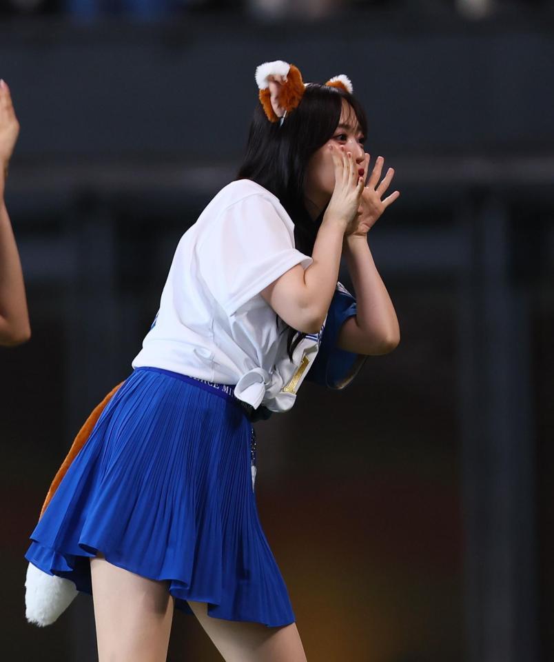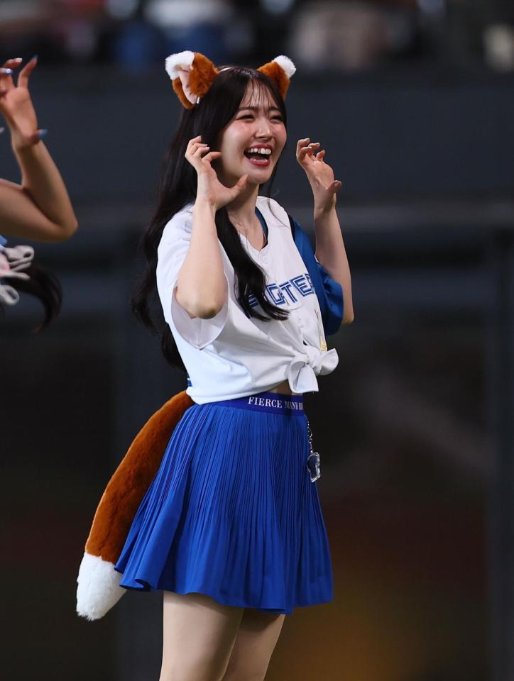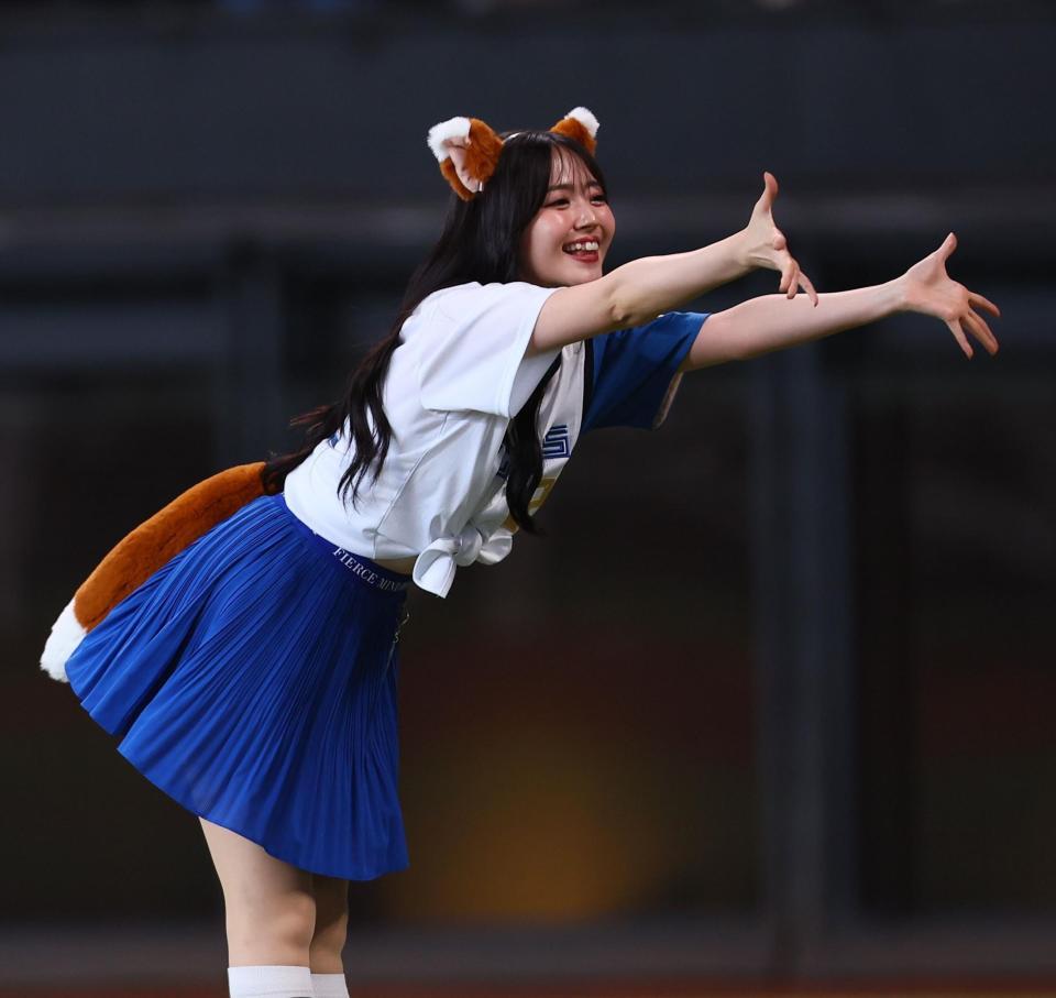 裾を結びお腹をチラ見せした背番号「412」のユニホーム、ブルーのミニスカート姿に、きつね耳、しっぽをつけて登場。キュートな笑顔を振りまき、破壊力のあるダンスで沸かせた。SNSでは「鈴木愛理強すぎる」、「かわいすぎる」、「こんなきつねなら化かされてもいい」、「別格」、「なんだ今の全部かわいいな!」と驚がくの声で溢れた。