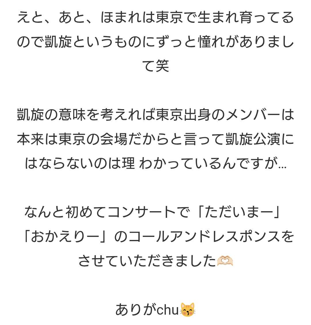 凱旋の意味を考えれば東京出身のメンバーは本来は東京の会場だからと言って凱旋公演にはならないのは理