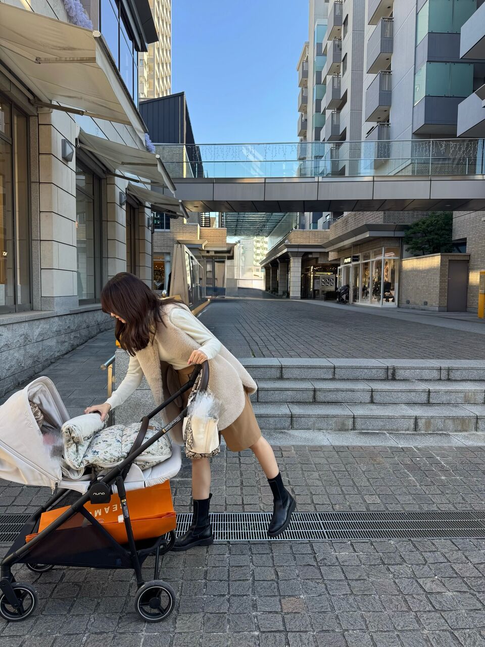 旦那とベビーカー押しながら代官山に子供の服を買いに行く