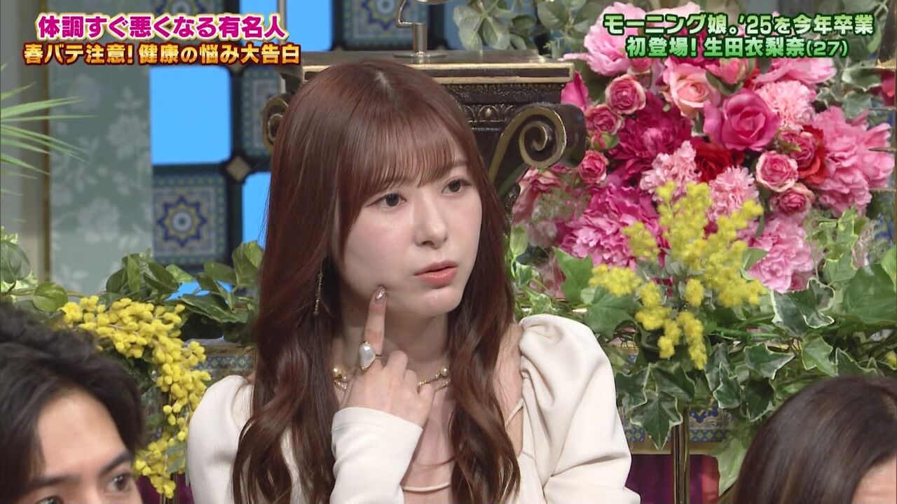 | マユリカ中谷、グローブを外せない状態で腹痛になった話を「さんま御殿」3時間SPで語る …野々村友紀子 / 松本伊代 ●春なのに…体調がすぐ悪くなる有名人 あの / 生田衣梨奈(モーニング娘。’25) / 石川満里奈 / 大久保佳代子 / 片寄涼… (出典:) |