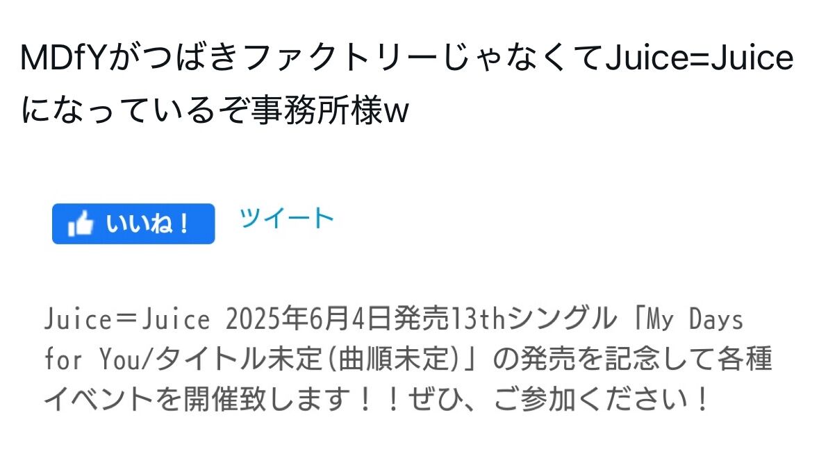 現在は修正されていますがJuice=Juiceの表記になっていました。コピペだったのかな。